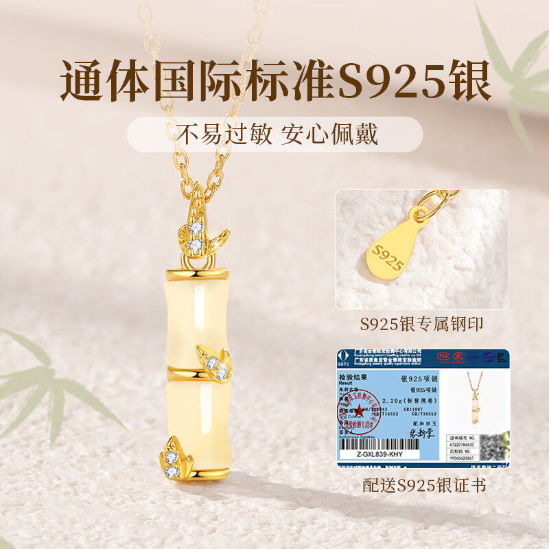 中国黄金央创竹节项链女款2025新款轻奢小众生日礼物送女朋友S925