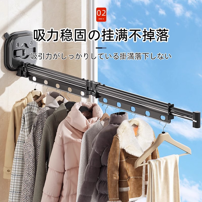日本吸盘可折叠晾衣架阳台隐形晒衣杆子神器伸缩免打孔多功能家用