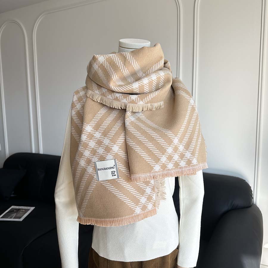 【橙子家】羊绒大披肩韩系加厚保暖格纹围巾高级秋冬百搭软糯围脖