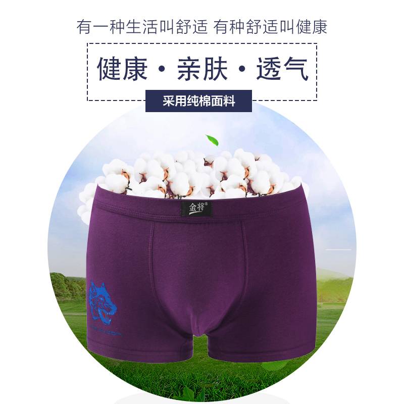 金将4条纯棉青年男士内裤平角裤全棉抗菌舒适透气大码四角内裤男