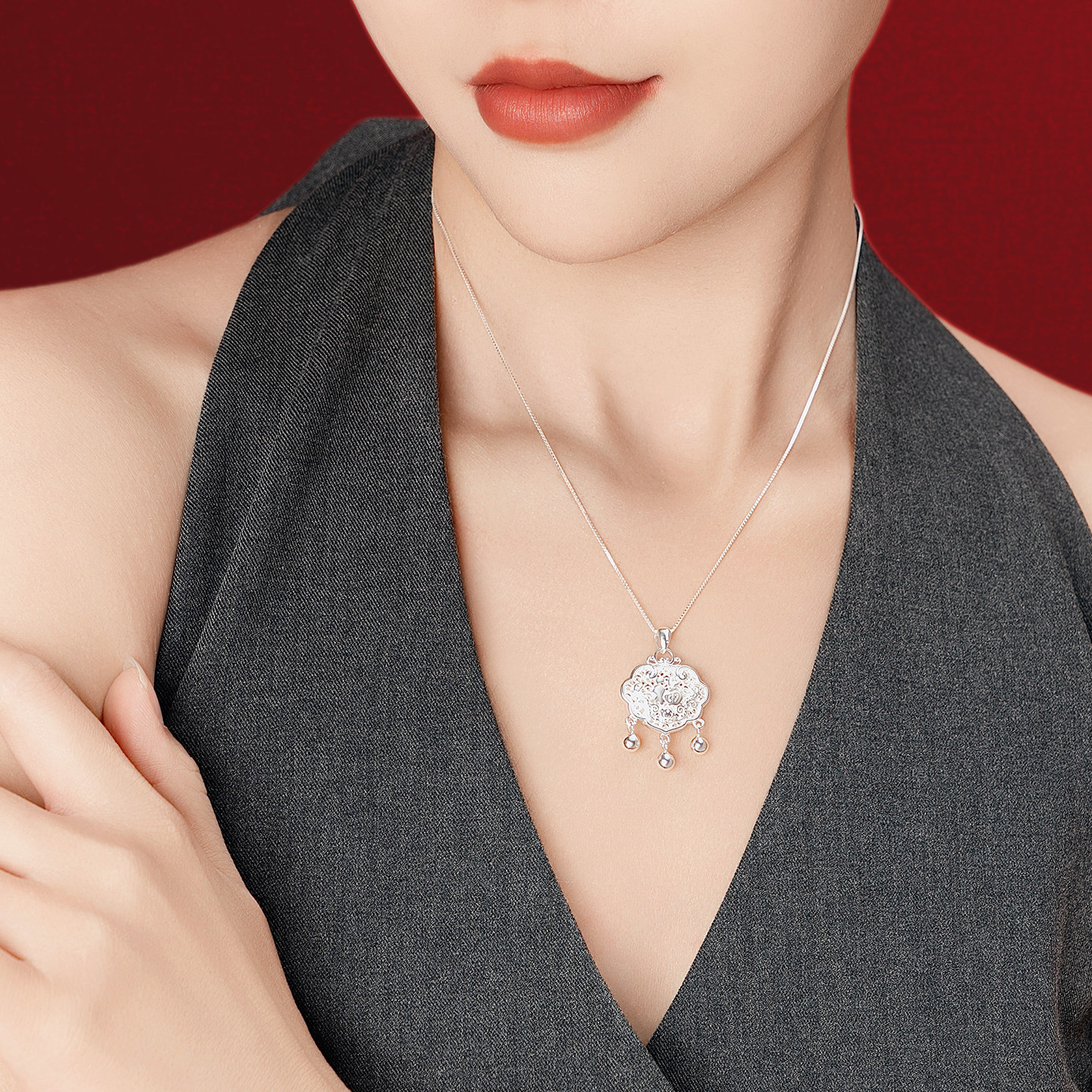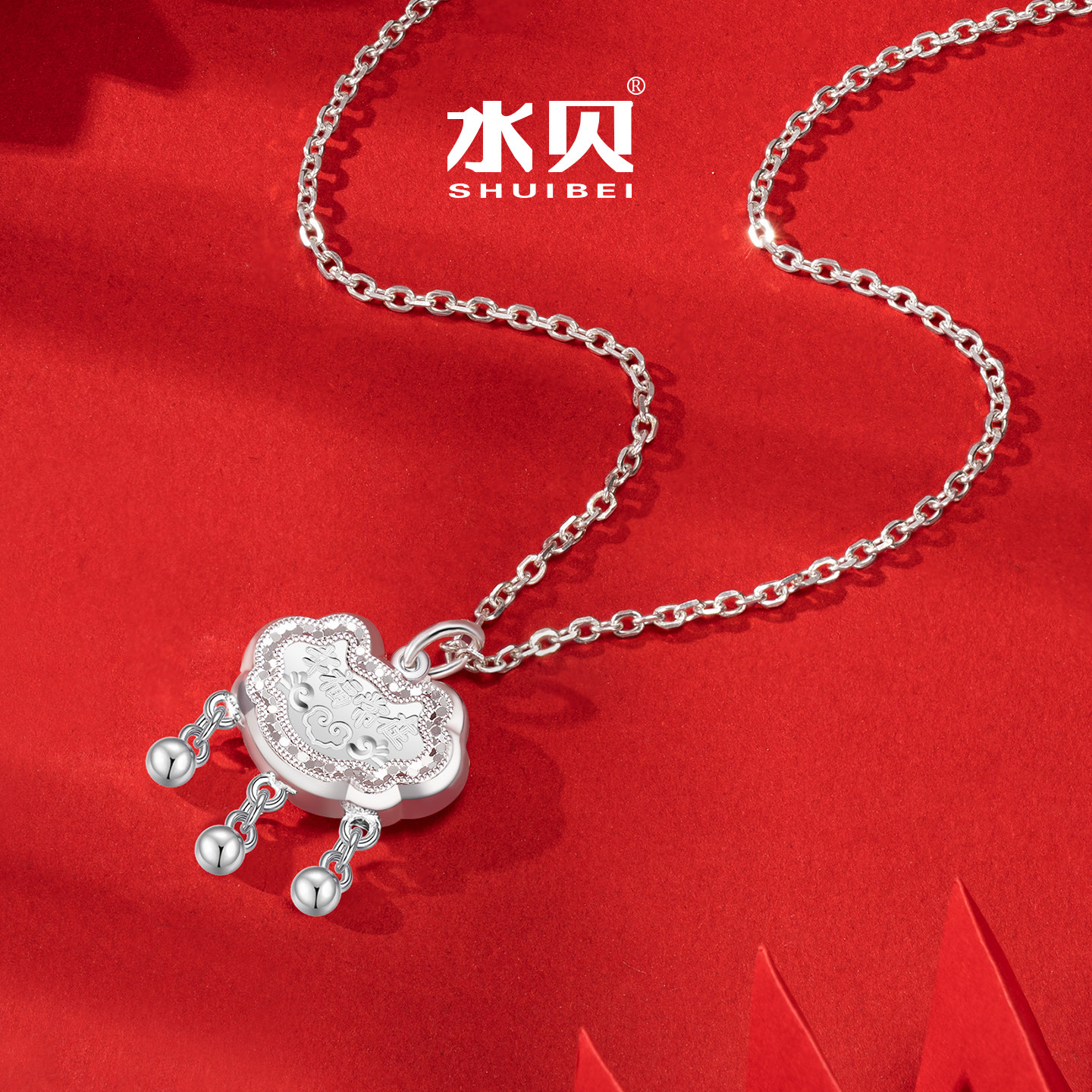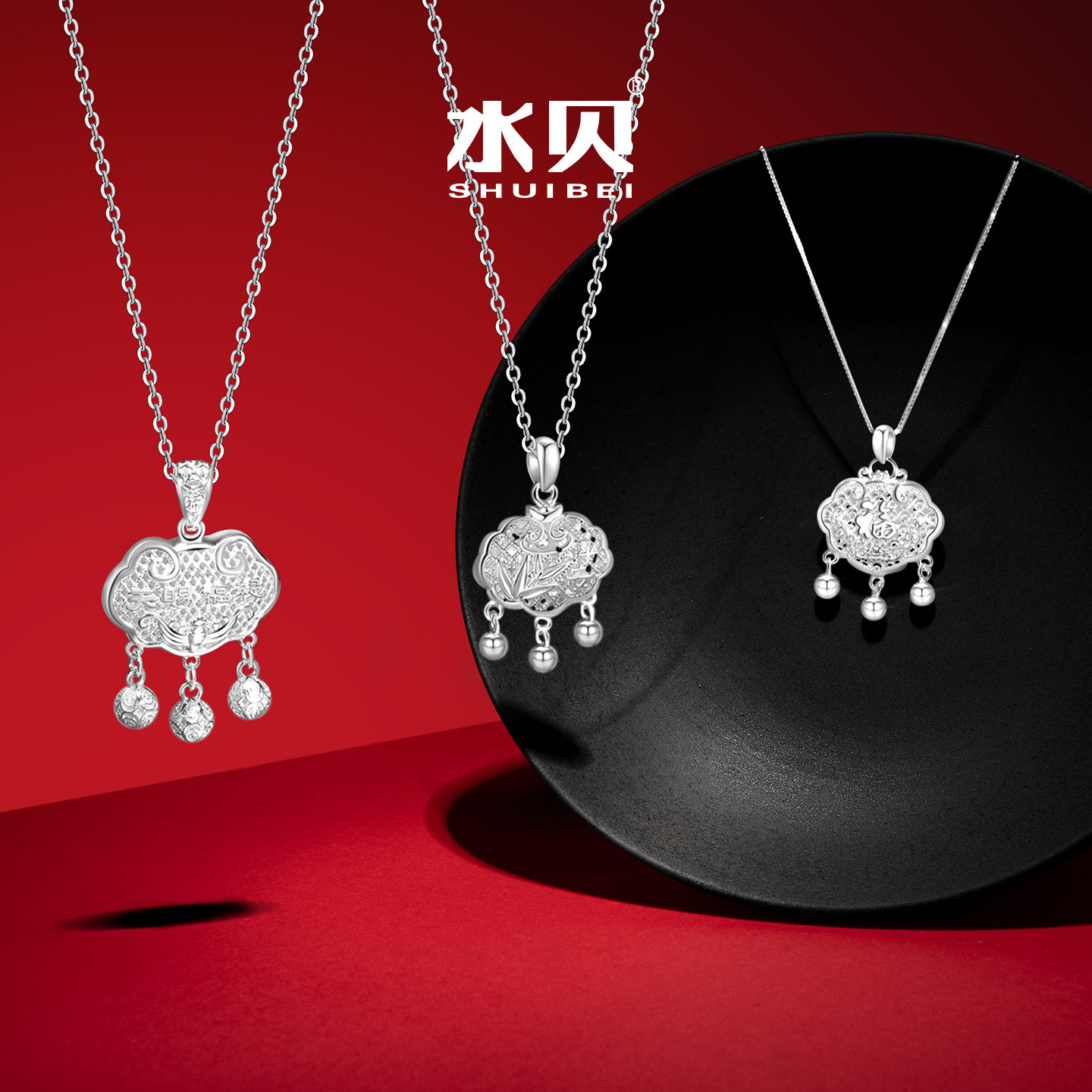 水贝银饰官方旗舰店足银长命富贵铃铛锁包吊坠宝宝新生儿送见面礼