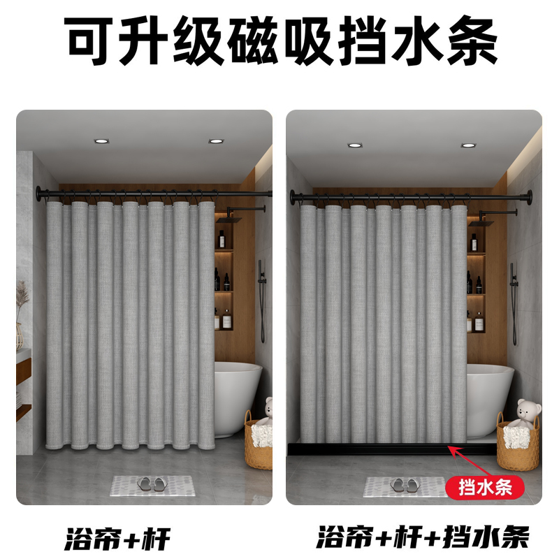 浴帘套装卫生间浴室加厚洗澡防霉免打孔防水帘淋浴帘轻奢隔断帘子