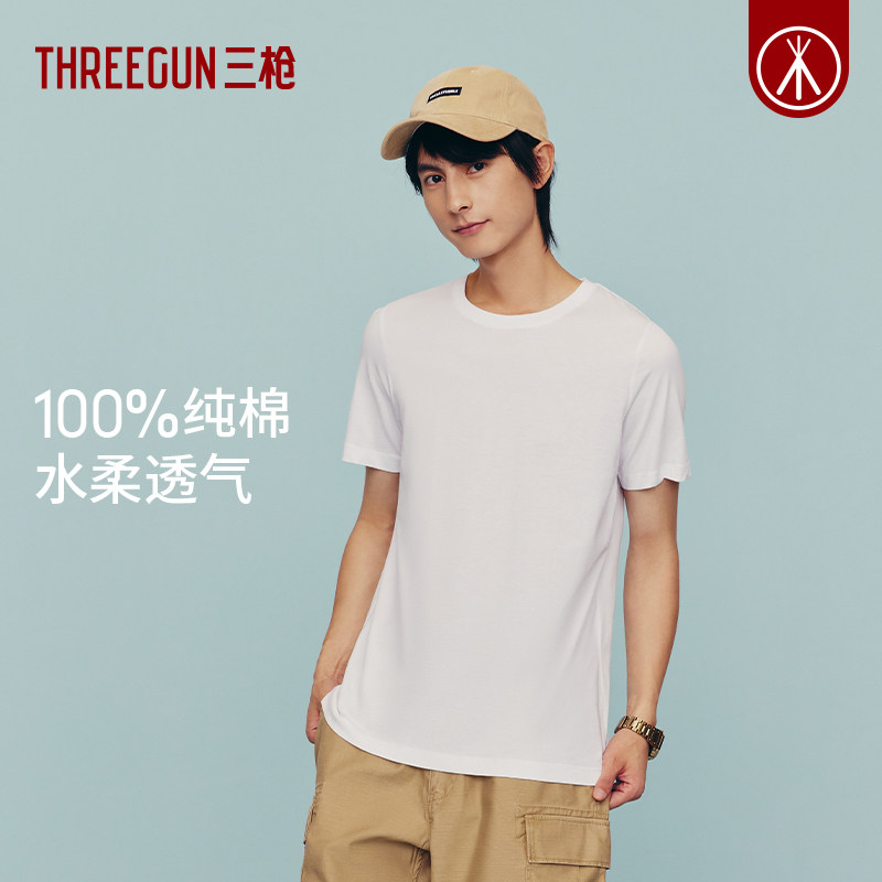 三枪男T恤纯棉亲肤透气水柔棉小白T圆领短袖休闲打底衫2025年秋冬