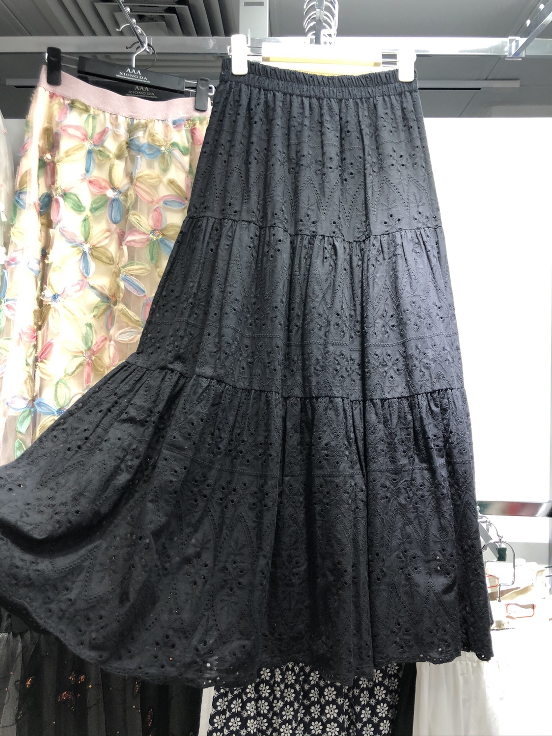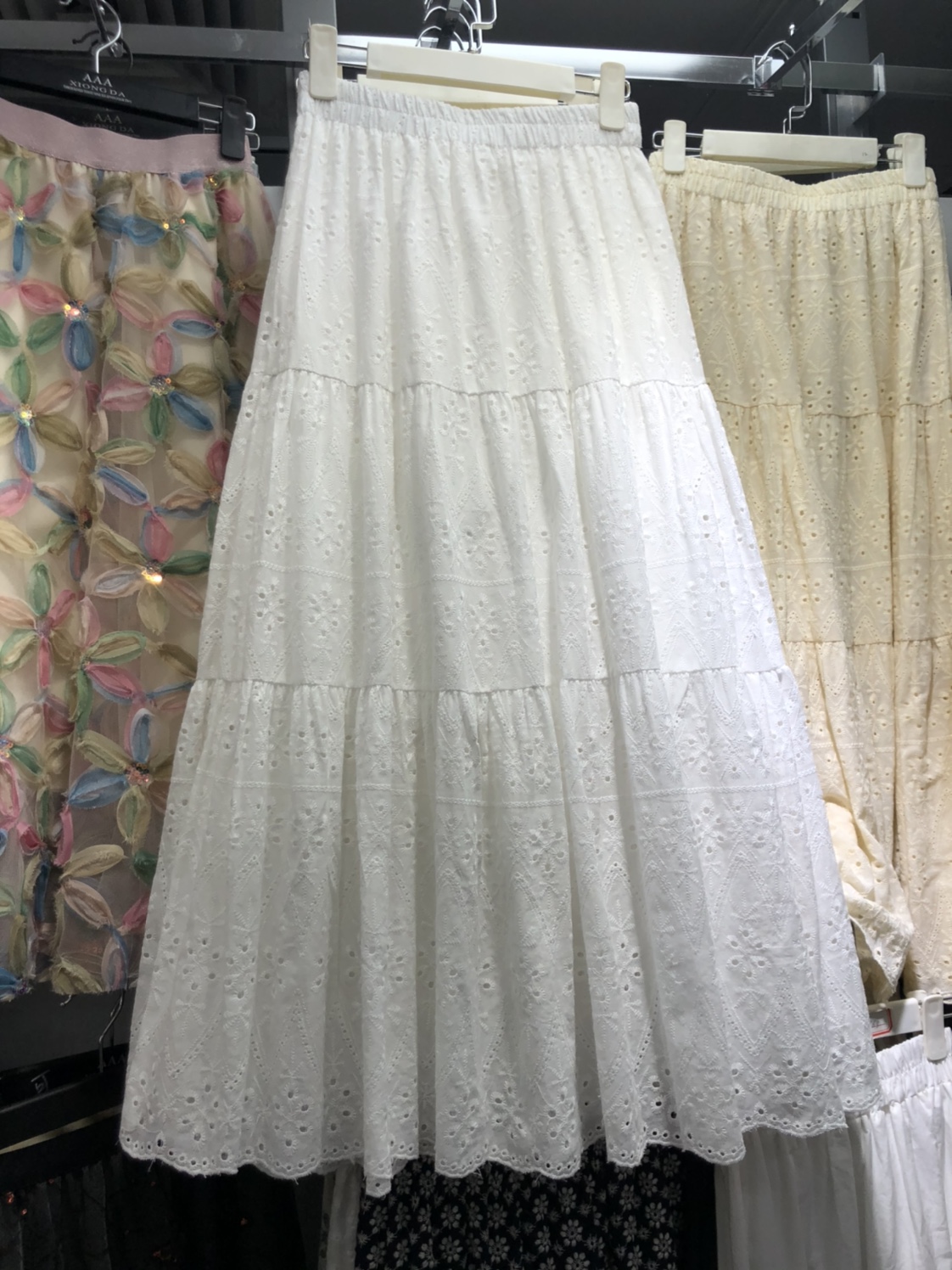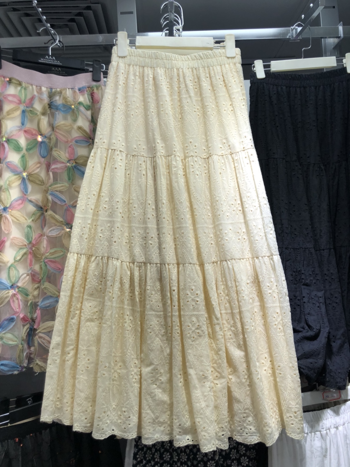 韩国东大门2025夏季刺绣钩花蕾丝半身裙甜美显瘦高腰a字长裙仙女