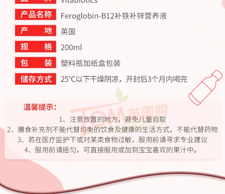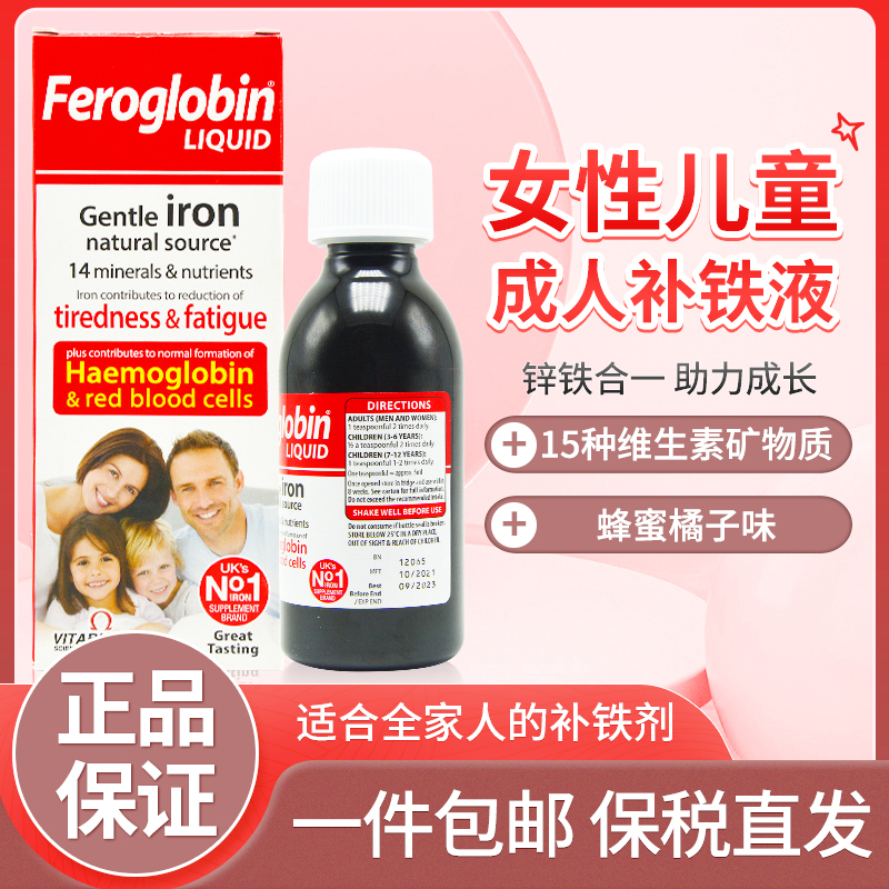 2瓶26年11月英国feroglobin b12补铁补锌维生素B12婴幼儿成人孕妇