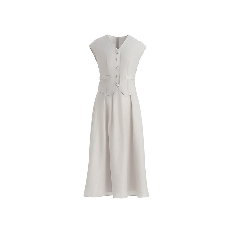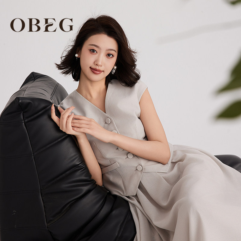 OBEG欧碧倩夏高智感老钱无袖马甲背心连衣裙假两件长裙50502559