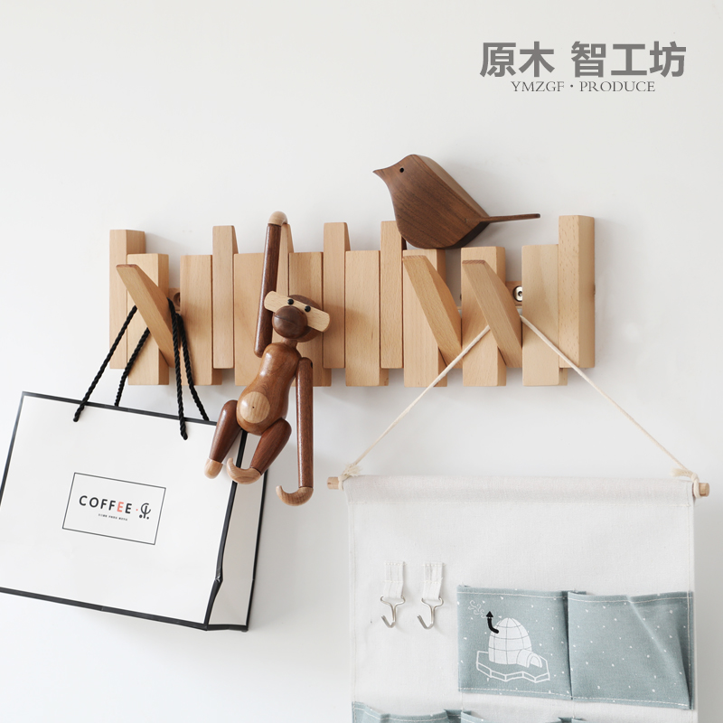 原木智工坊 钢琴键衣帽架黑胡桃墙壁置物架客厅装饰木条挂衣钩