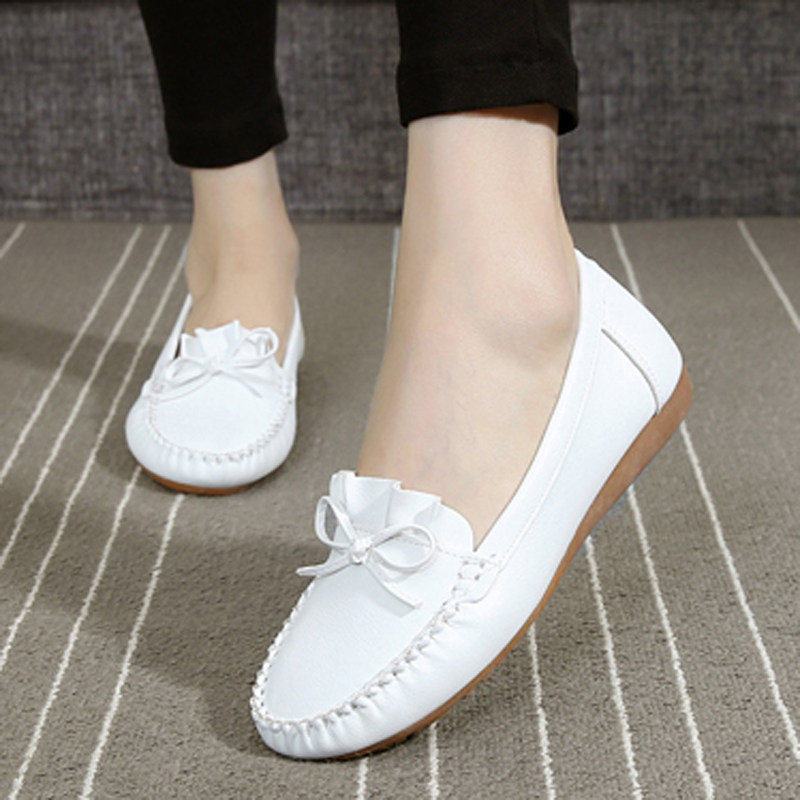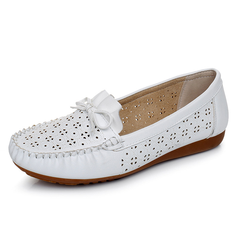新款软底透气孕妇豆豆鞋平底镂空洞洞妈妈鞋夏季护士鞋白色女凉鞋