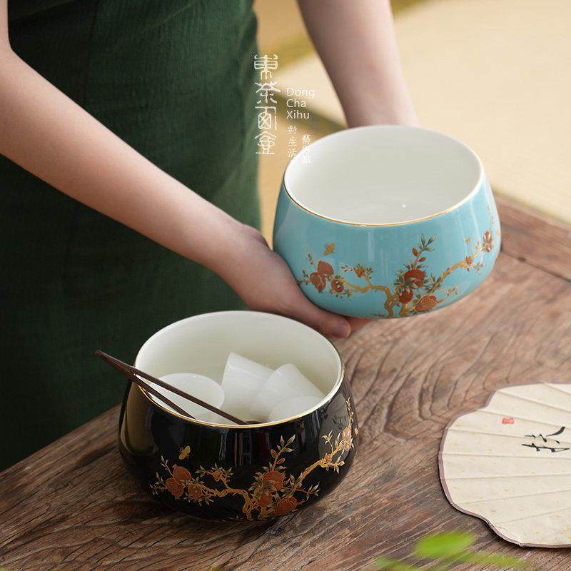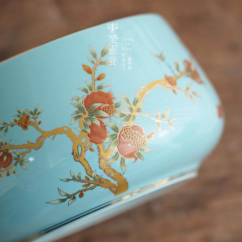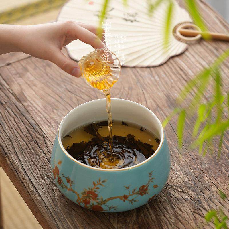 西GAX20240湖蓝釉茶缸灰陶瓷茶洗大号建水盂茶碗茶收纳水烟杯缸茶