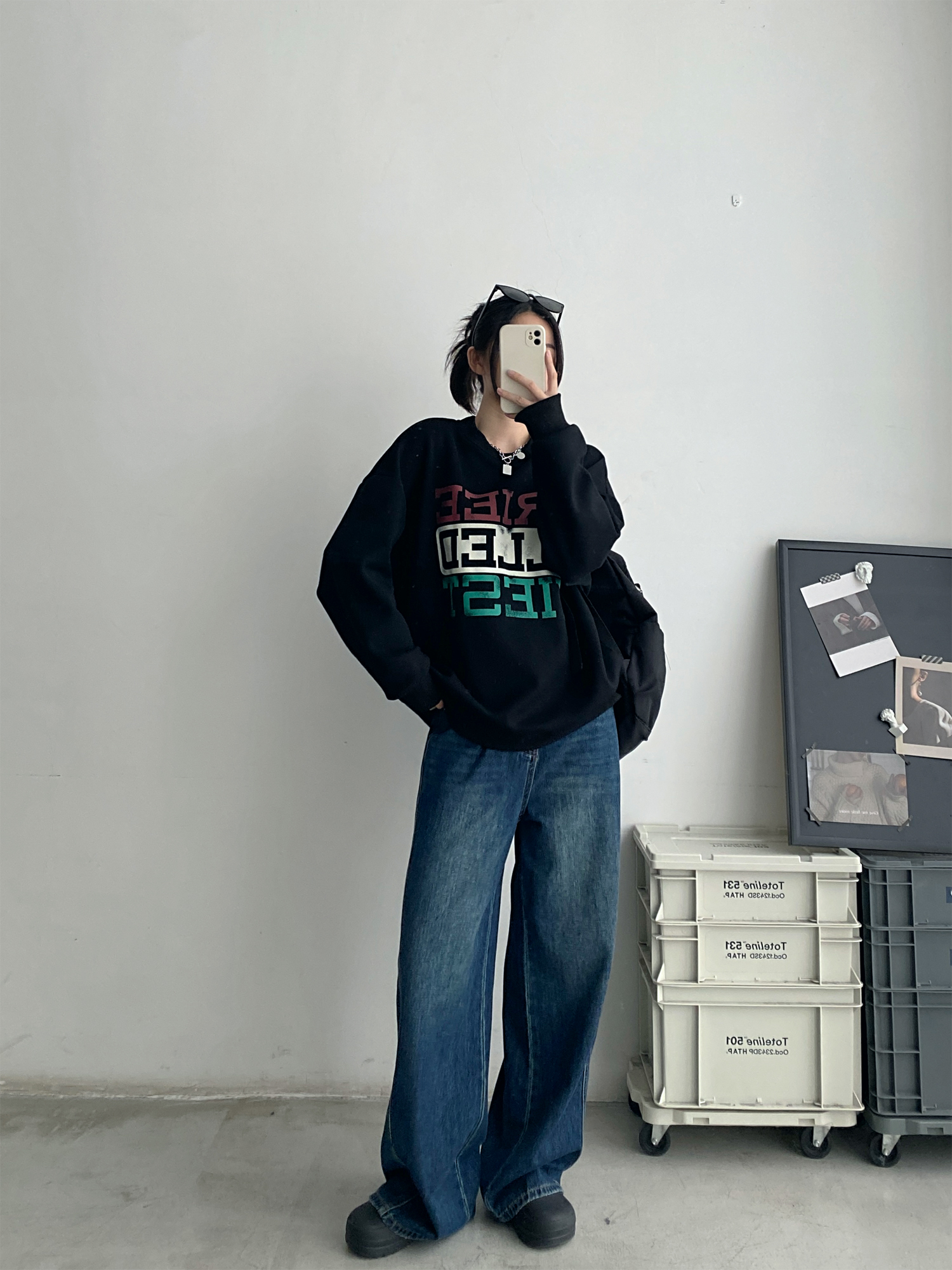 【清仓价】灰色卫衣女秋冬季宽松慵懒风加绒加厚字母印花套头上衣