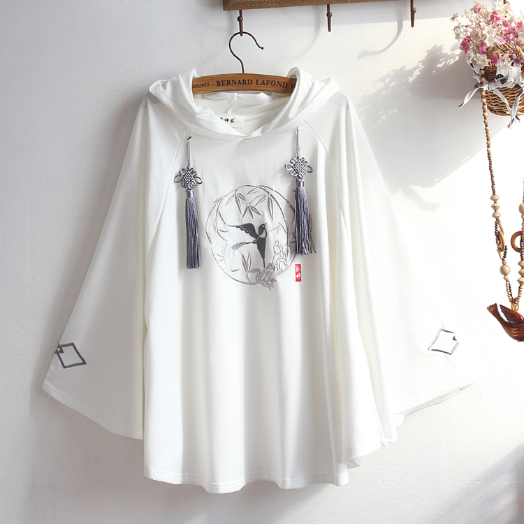 可爱古风流苏中国结燕子刺绣斗篷帽衫软妹学生蝙蝠衫宽松连帽卫衣