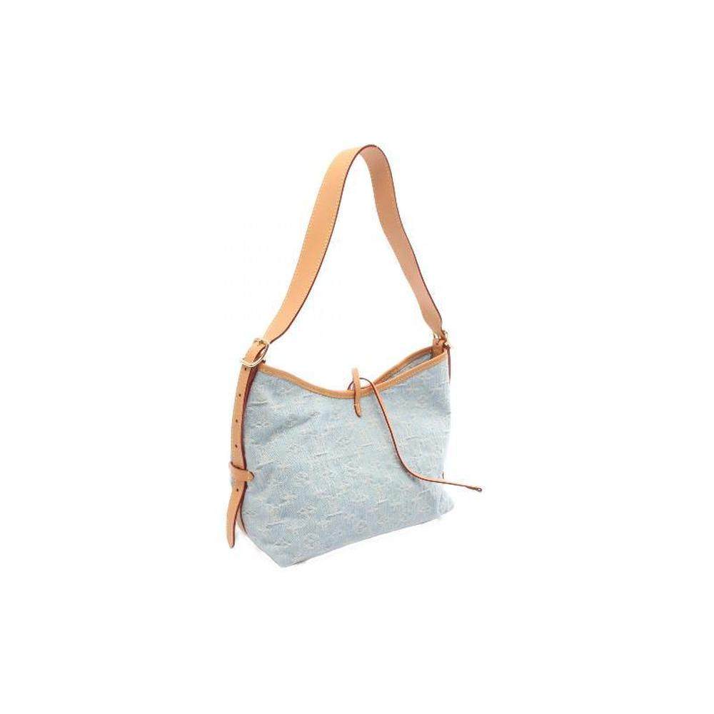 日本直邮中古LV路易威登女包A级95新Carryall牛仔布单肩包蓝色
