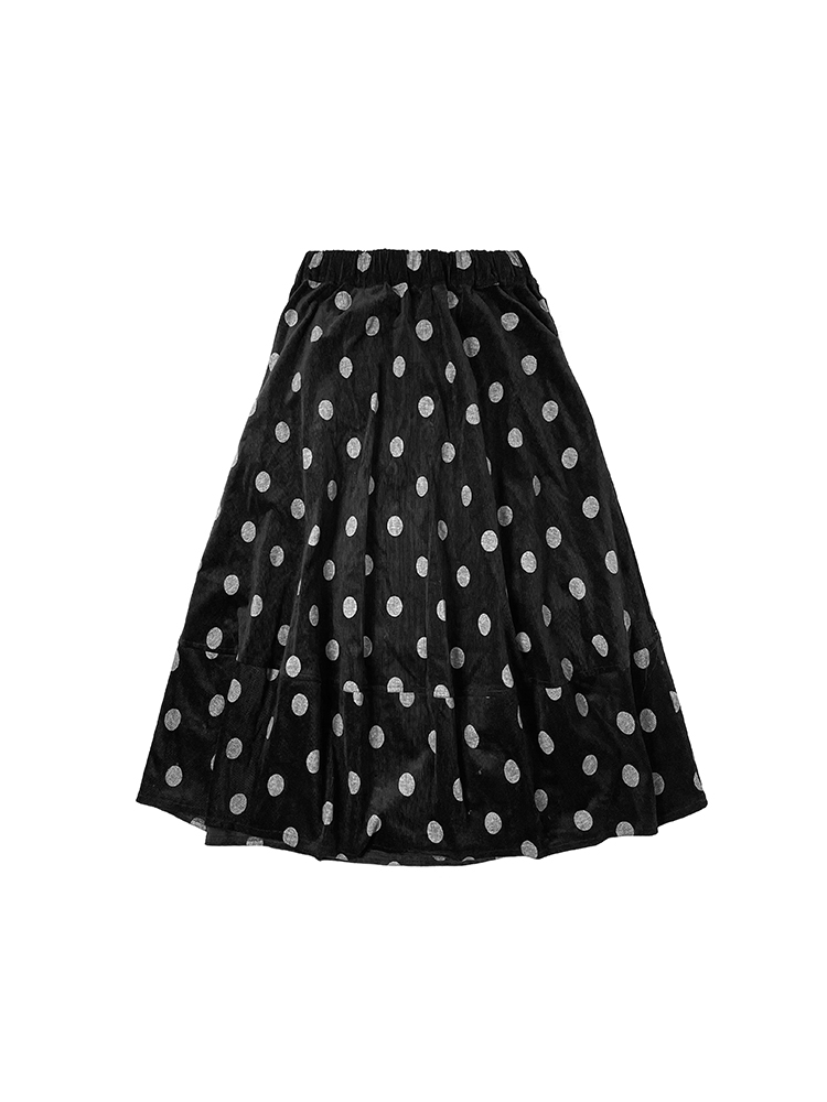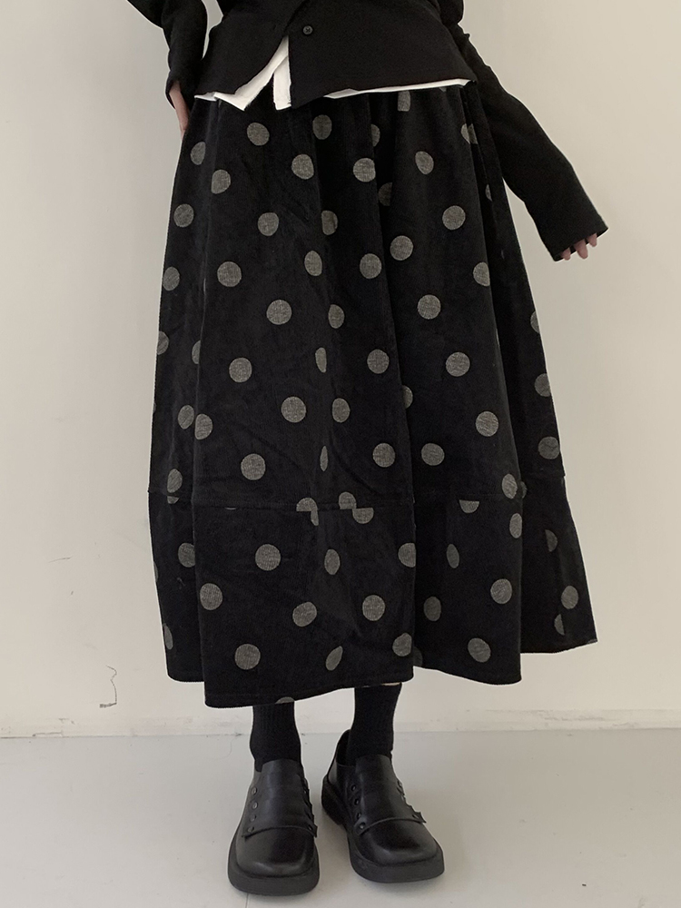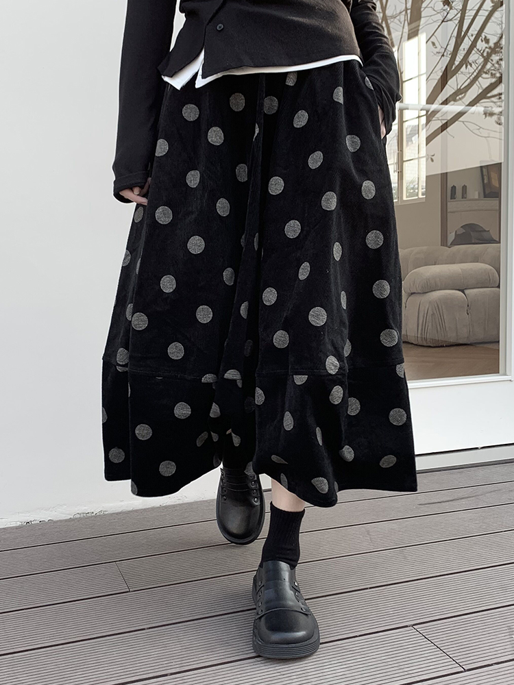 陆与山屿2025年春季灯芯绒波点半身裙女士秋冬黑色a字长裙子