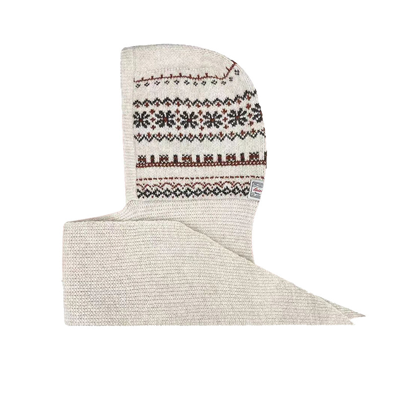 2025新款复古费尔岛风雪花针织帽子围巾一体女秋冬保暖护耳包头帽