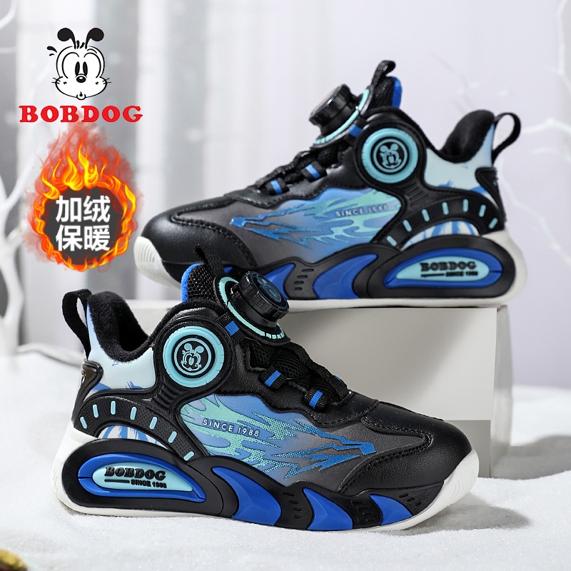 巴布豆童鞋男童棉鞋2025秋冬季新款皮面加绒保暖中大童儿童运动鞋