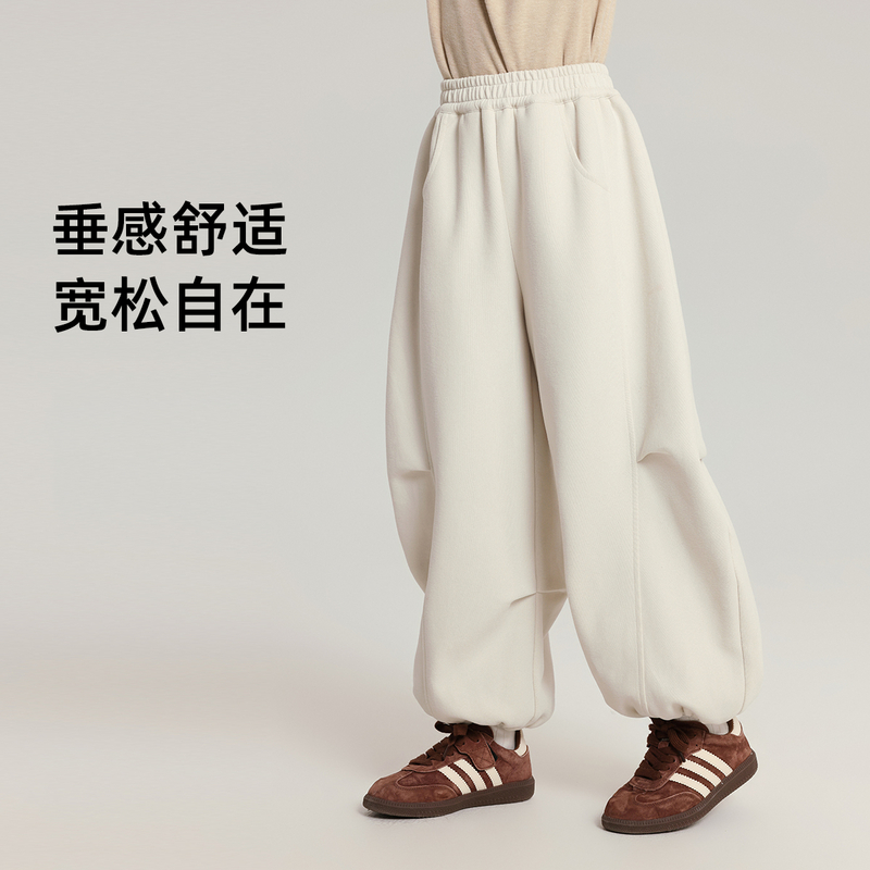 布丁哈鲁童装冬装女童宽松裤子2025春秋新款儿童垂感褶皱卫裤