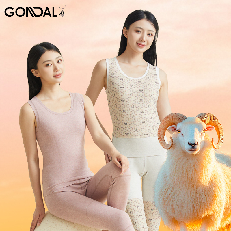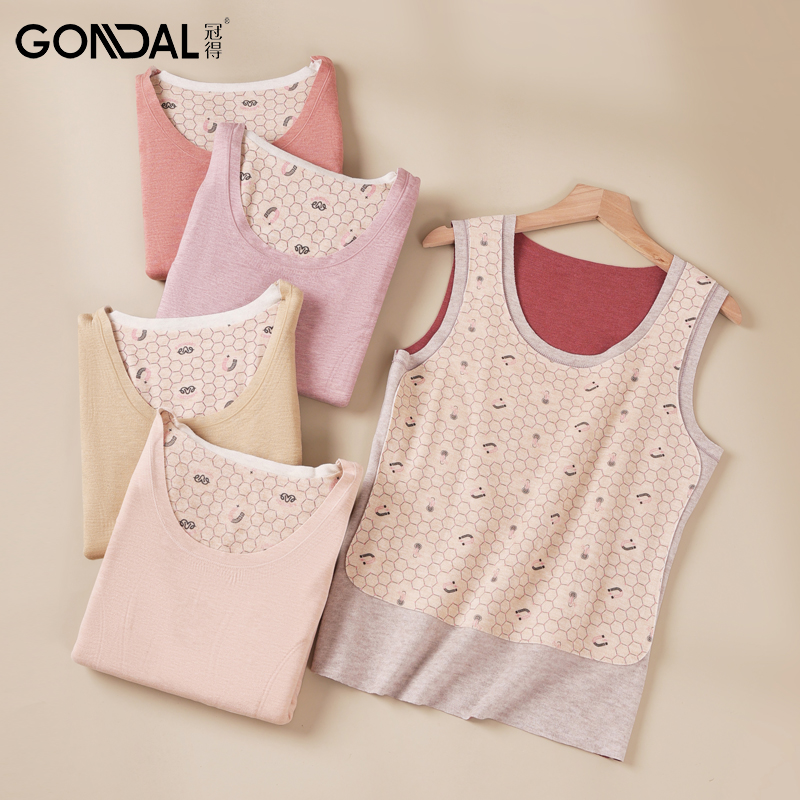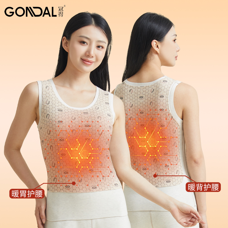 冠得热磁羊绒贴片女士保暖背心圆领加厚不加绒无痕贴身打底保暖衣