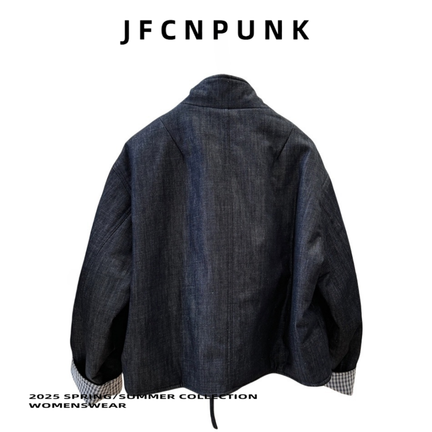庞克跳跳鱼秋冬季新款美式街头格子撞色拼接百搭宽松男女同款棉服