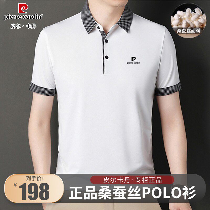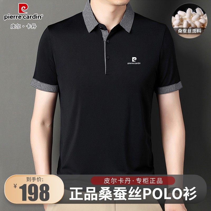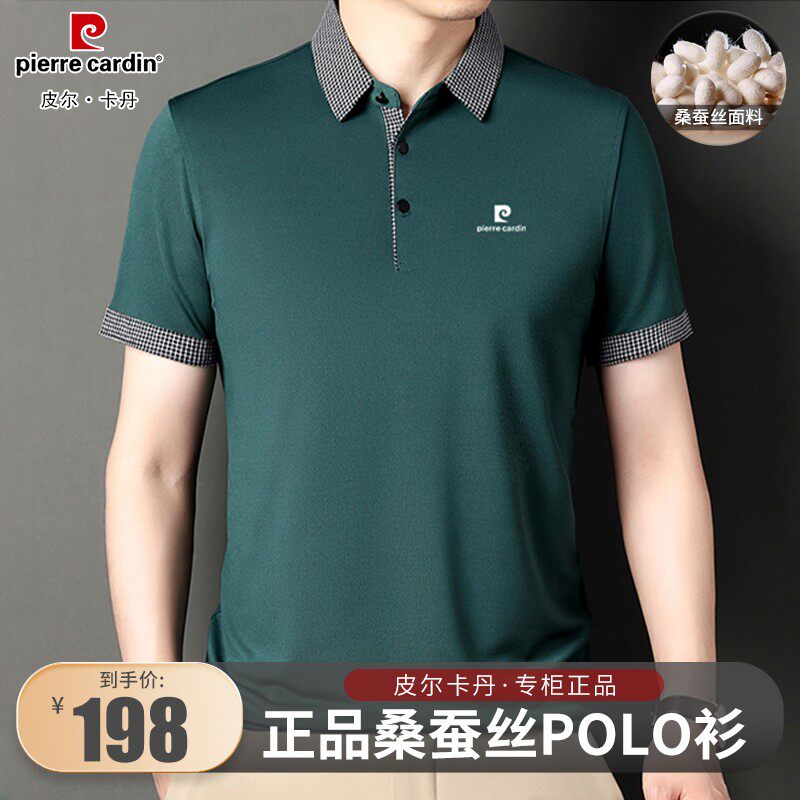 皮尔卡丹高档男士桑蚕丝短袖T恤夏季新款中年半袖冰丝翻领Polo衫