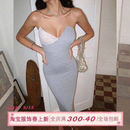 ITSNIKAR 蕾丝拼接吊带连衣裙女春夏性感修身包臀裙V领设计长裙子