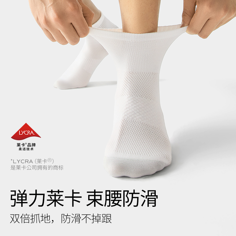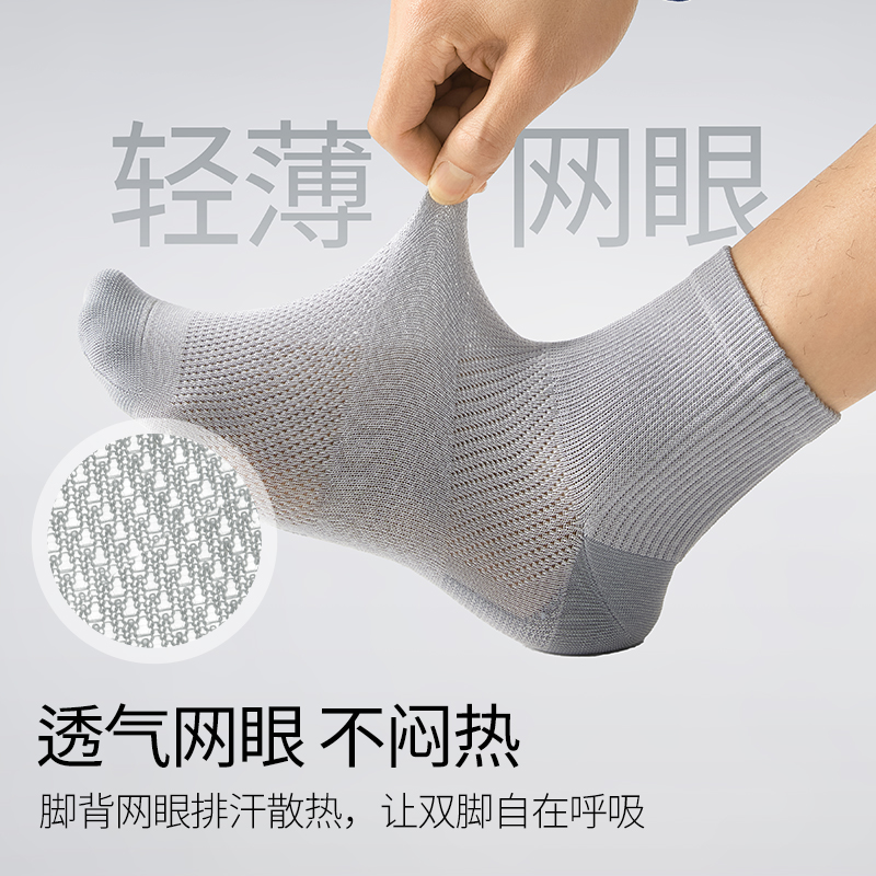 袜子男士夏季薄款短袜纯棉7A抗菌防臭网眼透气吸汗运动青少年凉袜