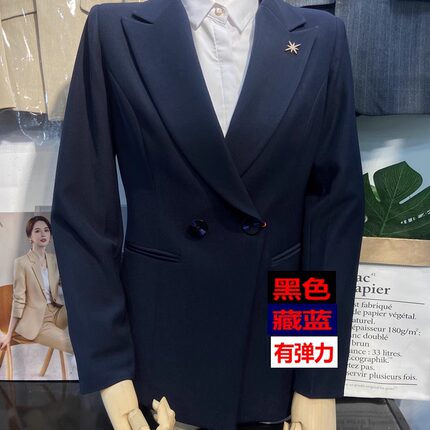 藏蓝色女职业装弹力西装双排扣套装春秋时尚气质正装工装西服郑州