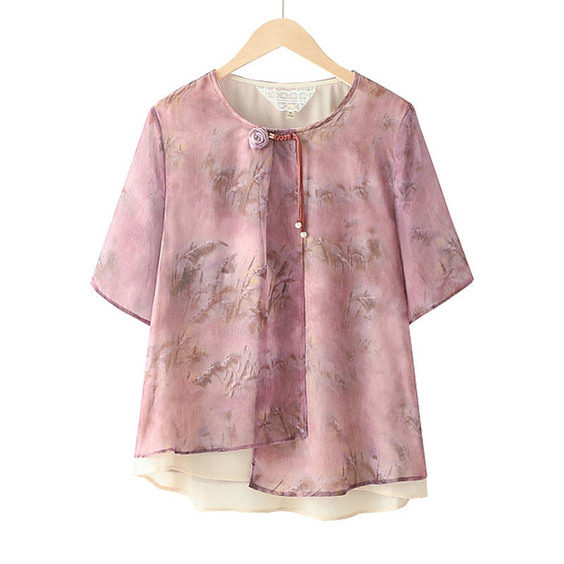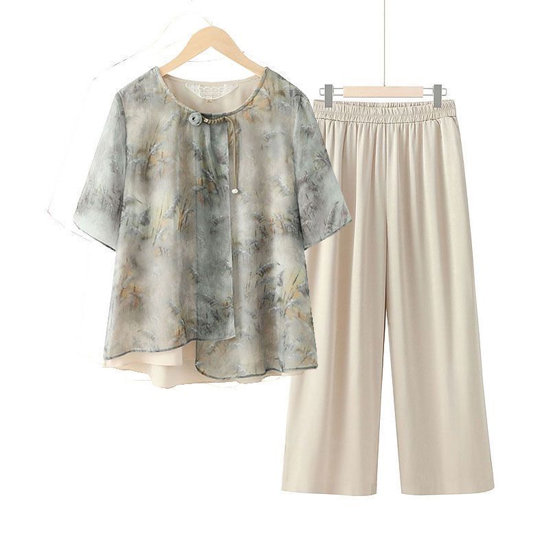妈妈夏装2025新款套装中老年人女装时尚短袖奶奶洋气衣服雪纺T恤
