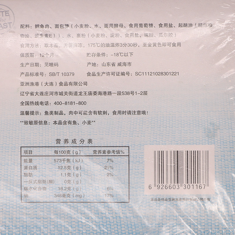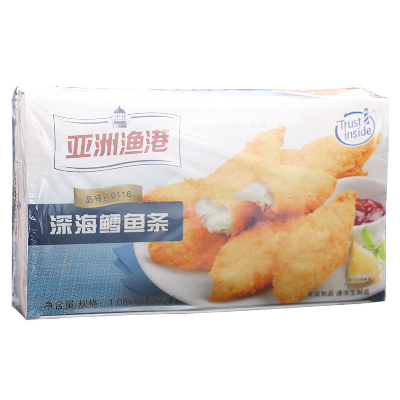 亚洲渔港深海鳕鱼条鳕鱼酥香嫩鳕鱼油炸半成品油炸新品1.08kg/盒
