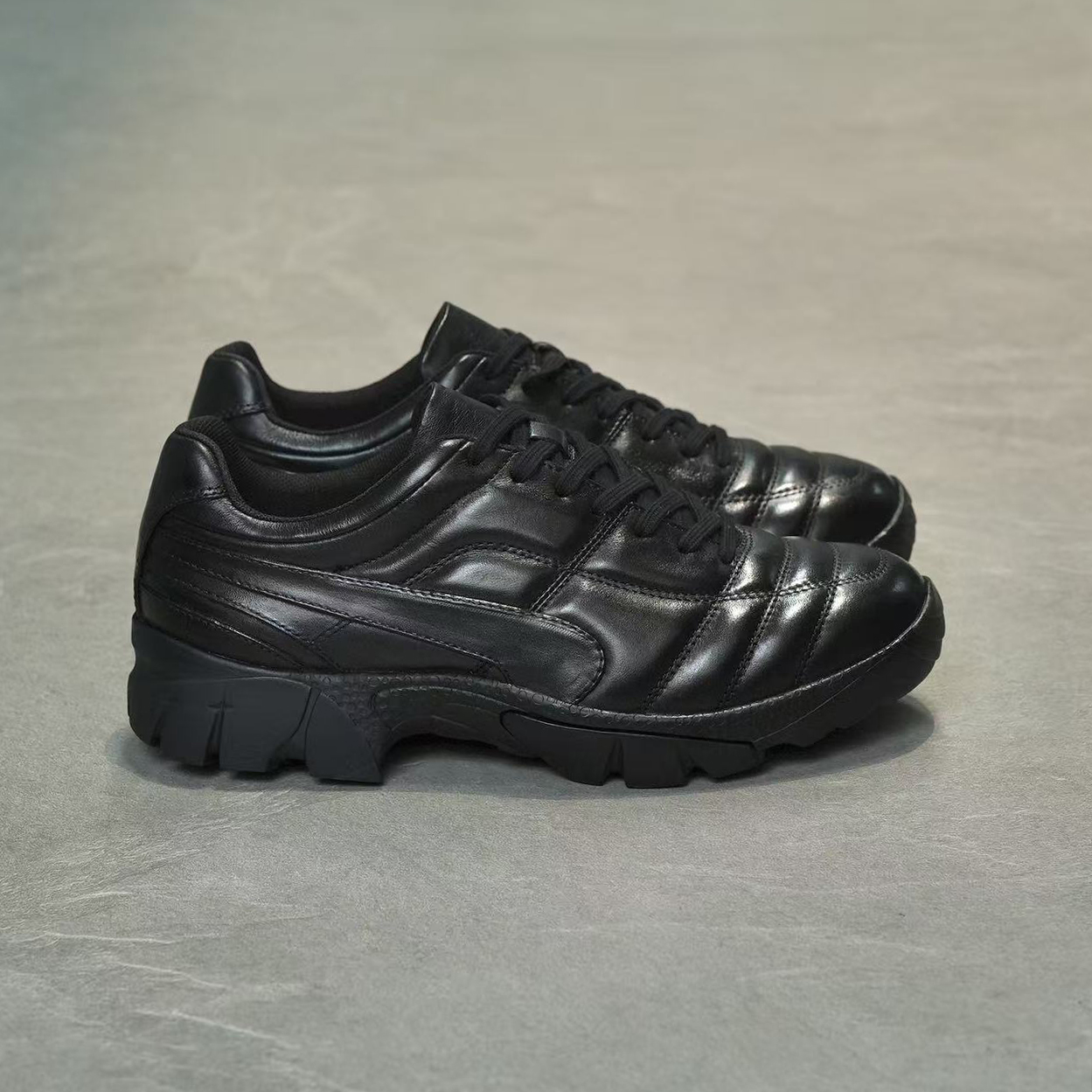 枯骨秋冬保暖头层牛皮复古足球鞋爆改户外运动休闲鞋通勤黑色皮鞋