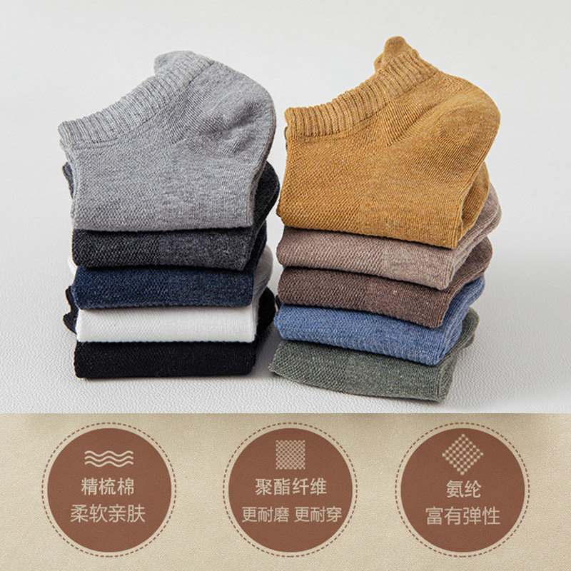 袜子男短袜纯色春夏季薄款网眼透气男船袜浅口低帮防臭男士短筒袜