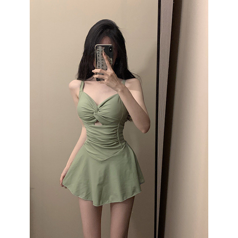 韩ins风连体挂脖吊带裙式泳衣女新款性感显瘦小胸夏纯欲网红泳装