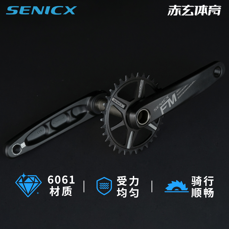 SENICX驭勇FM3山地自行车超轻牙盘单车曲柄170mm单盘34T轴心24mm