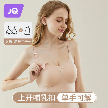 婧麒哺乳背心吊带产后喂奶免穿内衣防走光怀孕期春夏款女保暖文胸