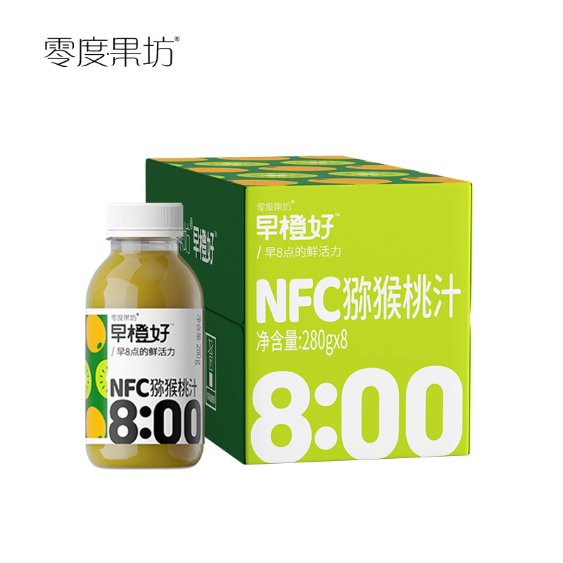 零度果坊100%NFC猕猴桃汁早橙好奇异果汁280g*8浓缩饮料整箱解腻