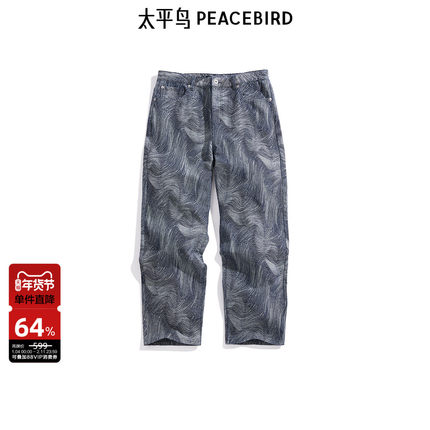 太平鸟男装 休闲牛仔裤男美式复古肌理面料潮流宽松长裤男