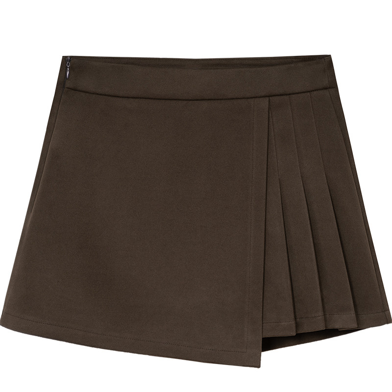不对称毛呢裙裤女复古高腰百褶裙造型设计防走光呢子A字阔腿短裤