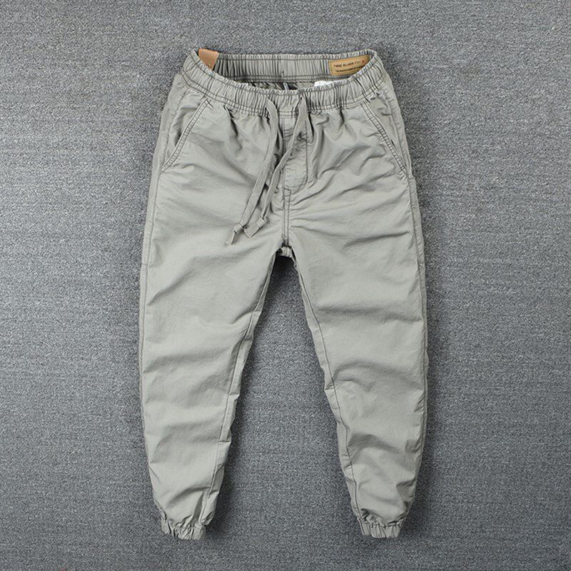 抽绳束脚裤男夏季薄款宽松复古水洗男裤子潮休闲裤秋夏9分九分裤