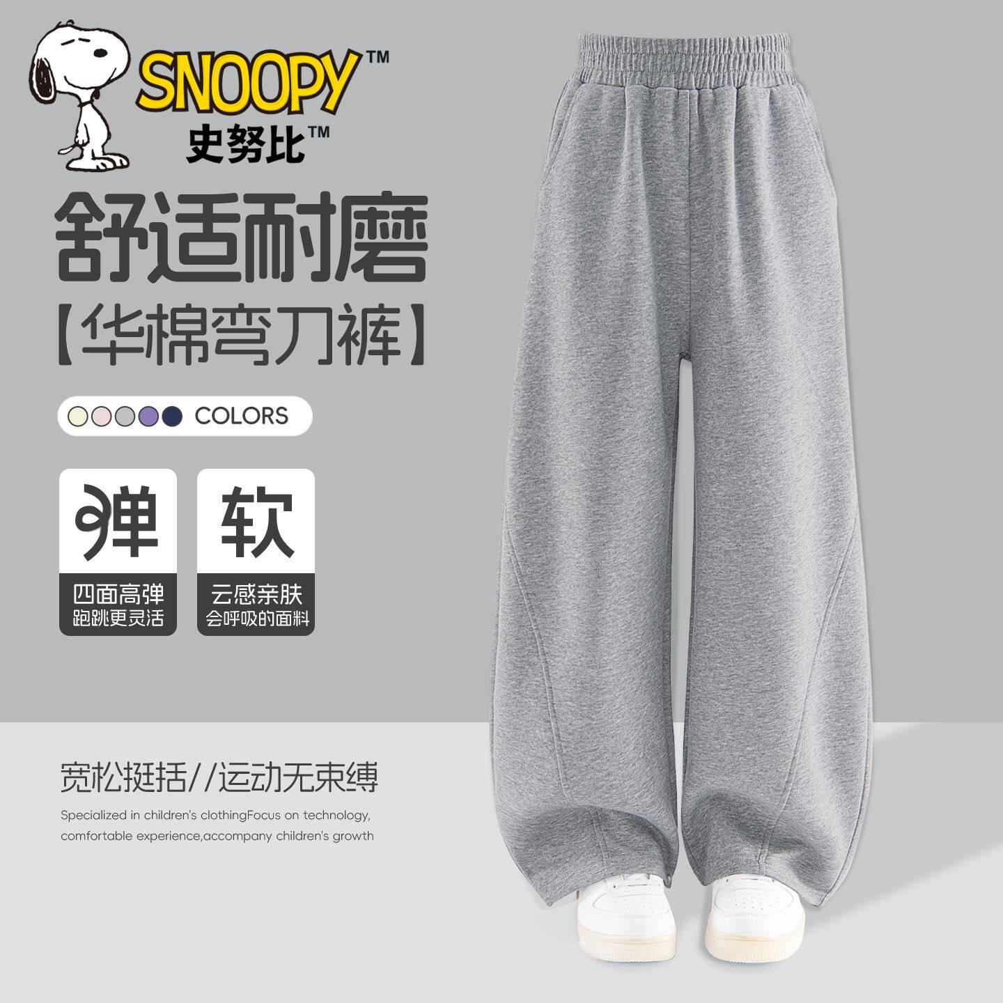 史努比女童裤子秋季弯刀卫裤2026新款网红直筒卫裤春秋款运动裤子