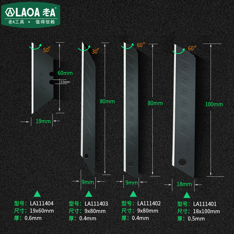 老A SK2黑刃美工刀片裁纸刀片 替换刀片锋利耐用 梯形 贴膜刀片