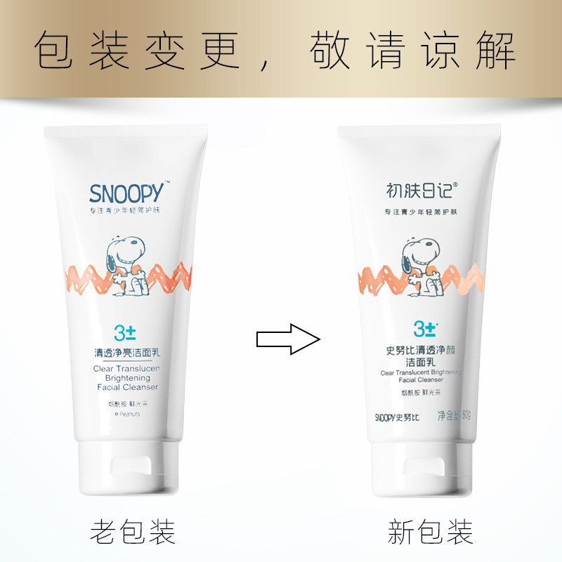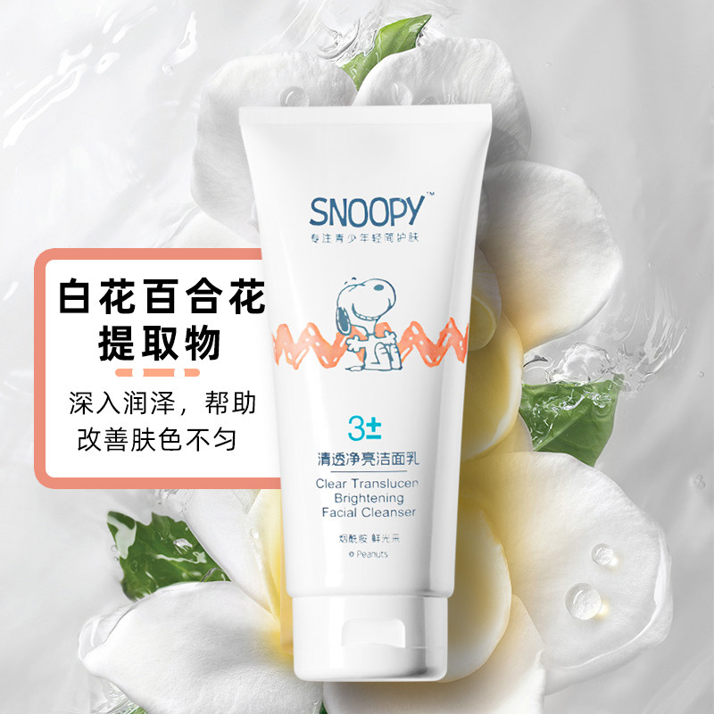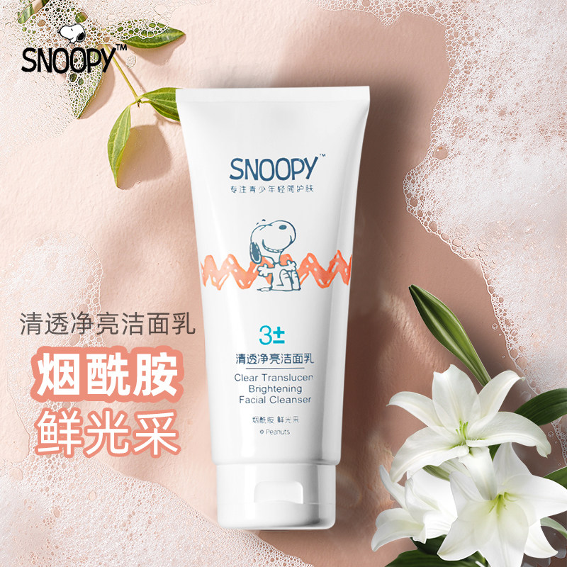 史努比清透净亮洁面乳补水保湿控油提亮肤色儿童青少年学生洗面奶