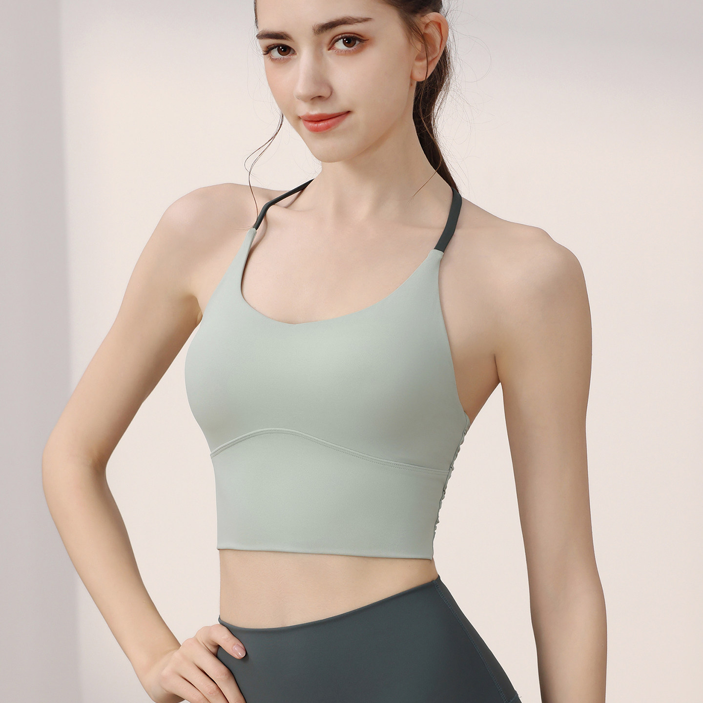 撞色美背运动内衣固定杯垫防震跑步健身套装瑜伽服吊带运动文胸夏