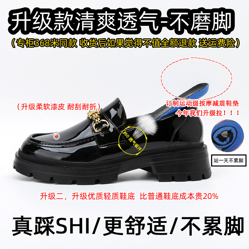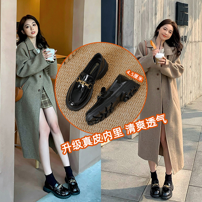 加绒小皮鞋女厚底松糕乐福鞋2025春秋新款休闲平底豆豆鞋黑色单鞋