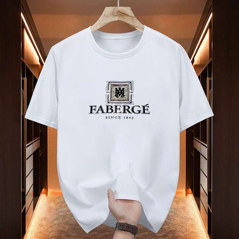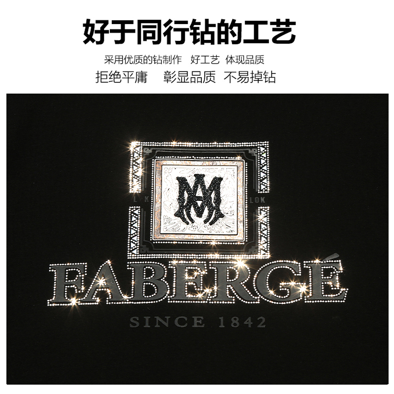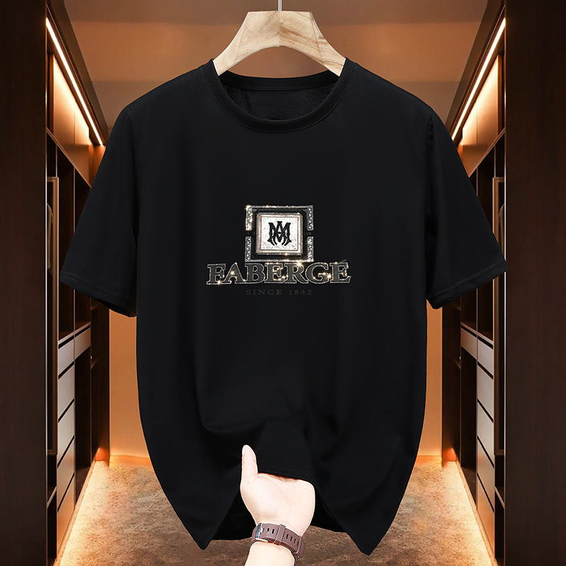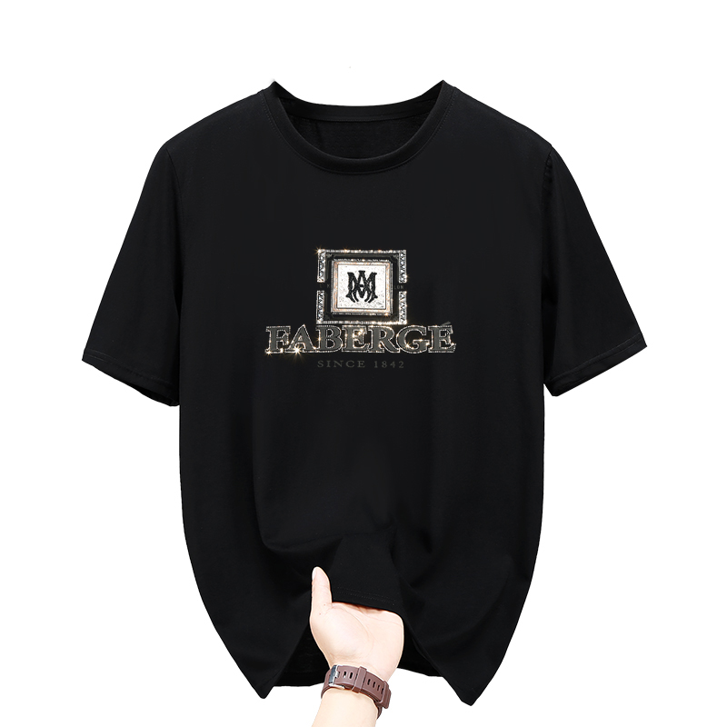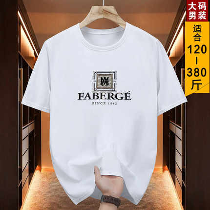 宽松男圆领大码半袖烫钻短袖夏季舒适棉T恤胖子加肥加大潮牌上衣