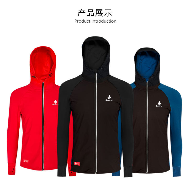 BESUTO防风跑步健身速干保暖运动薄绒弹力拉链透气连帽男女外套