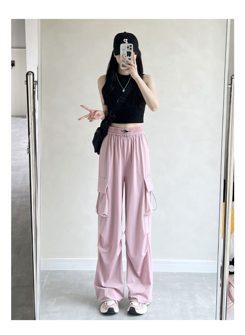 美式复古工装裤女夏季薄款高腰显瘦阔腿休闲直筒速干运动登山裤子