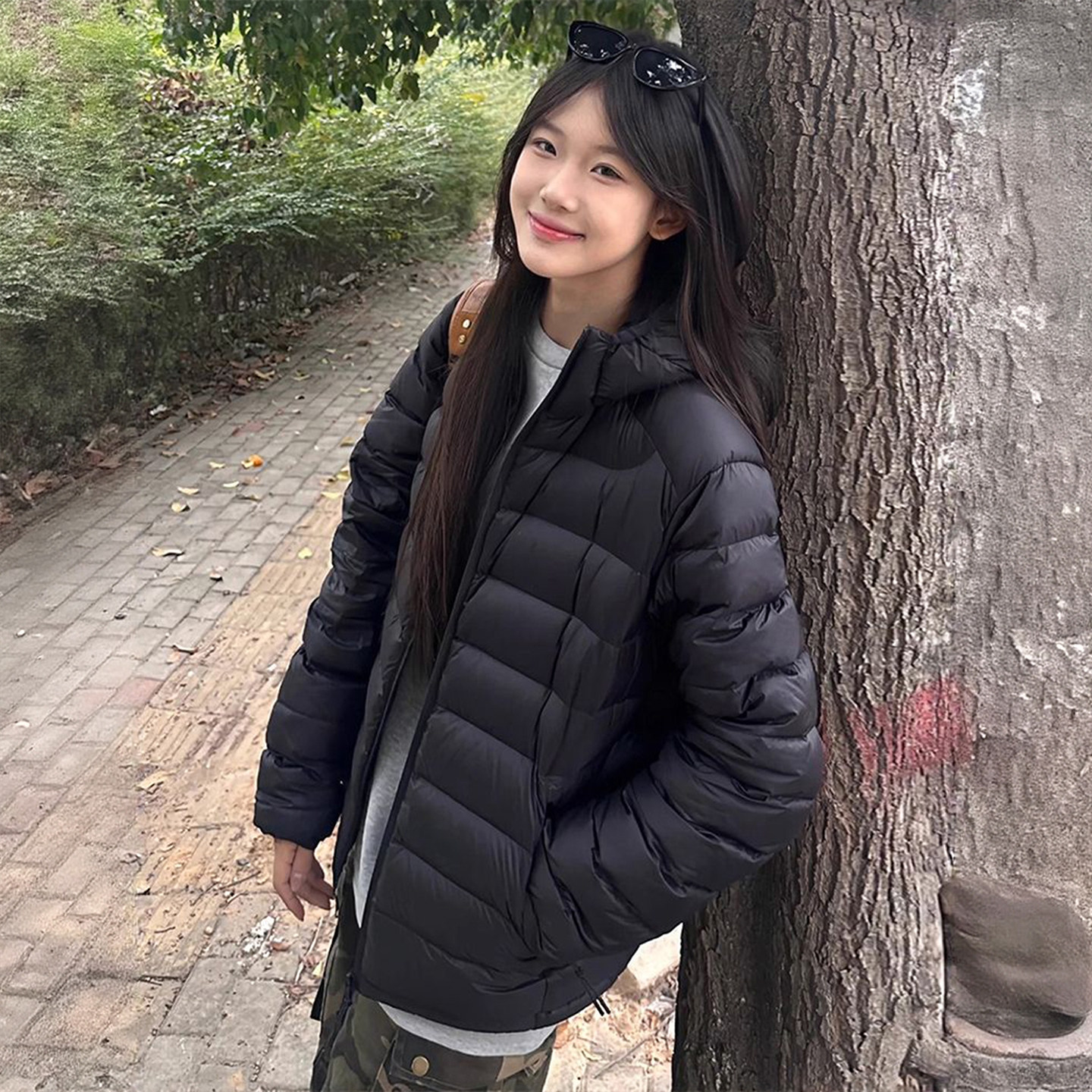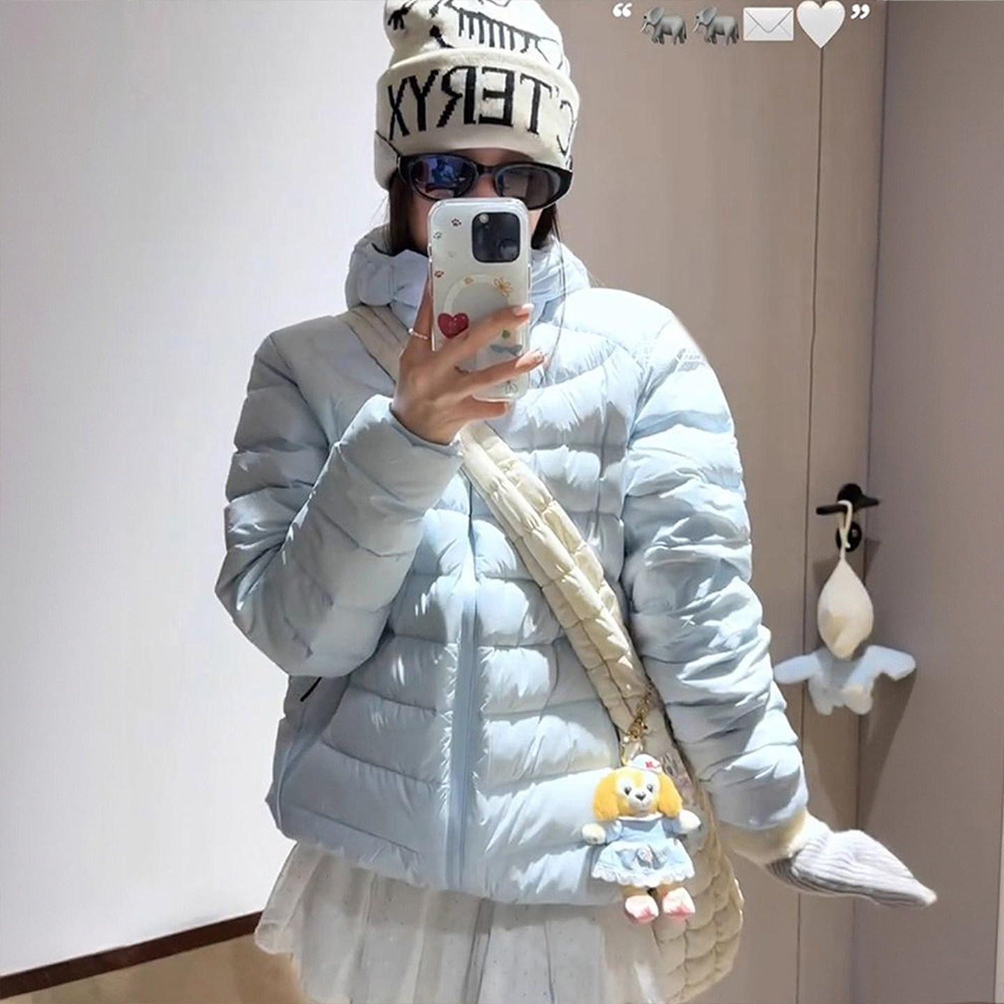 大码女装胖mm浅蓝色排骨羽绒棉服女韩系宽松百搭保暖加厚连帽外套
