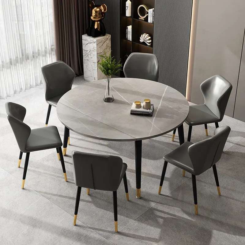 岩板圆形可伸缩餐桌椅组合意式极简小户型北欧轻奢现代简约饭桌子