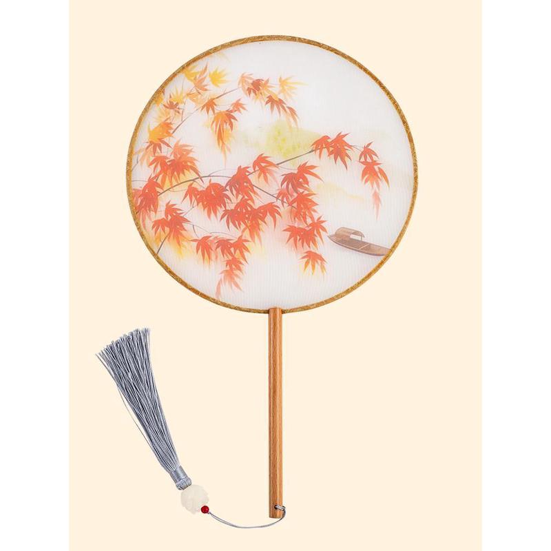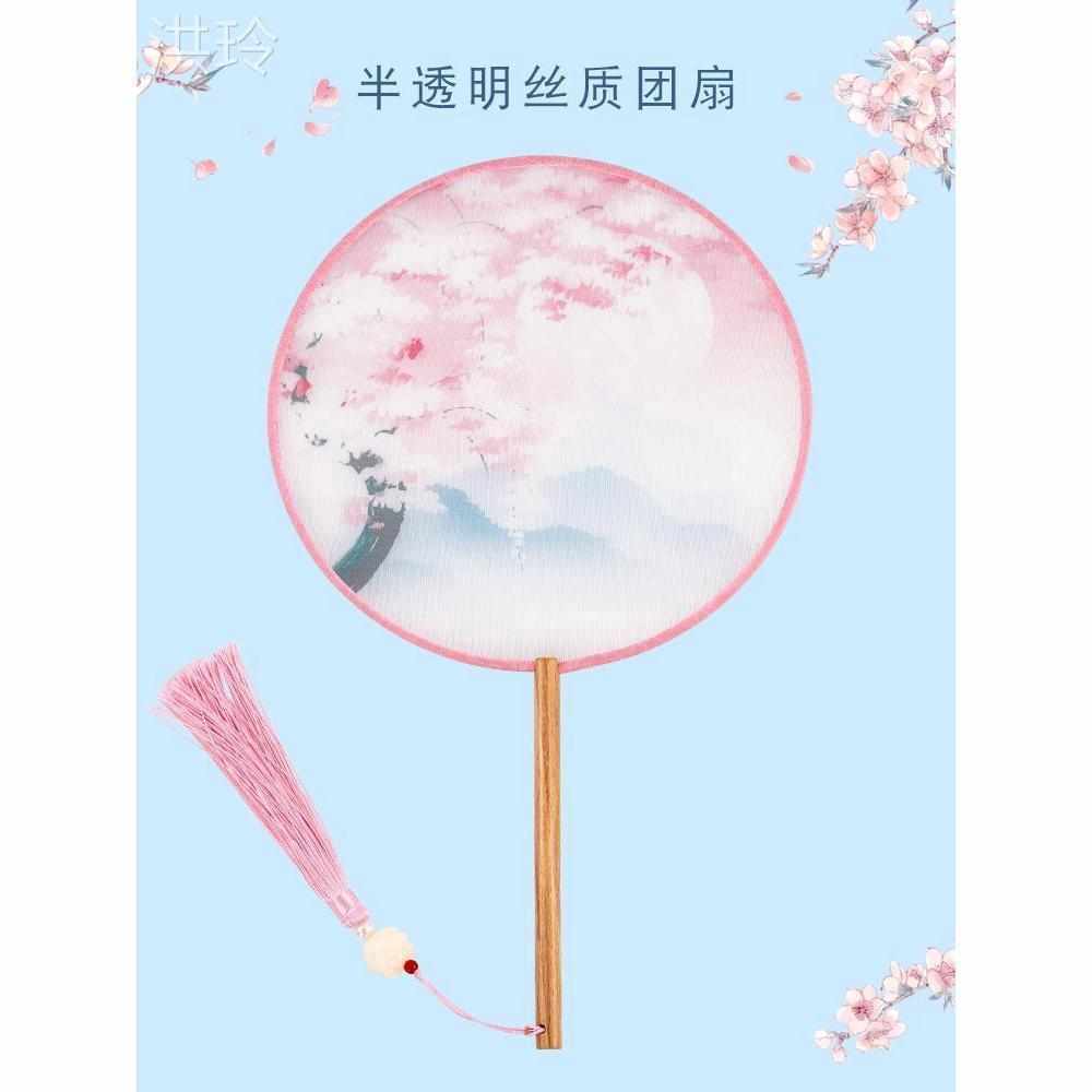 丝质团扇古风扇子女汉服长柄流苏双面刺绣团扇古典舞蹈中国风跳舞