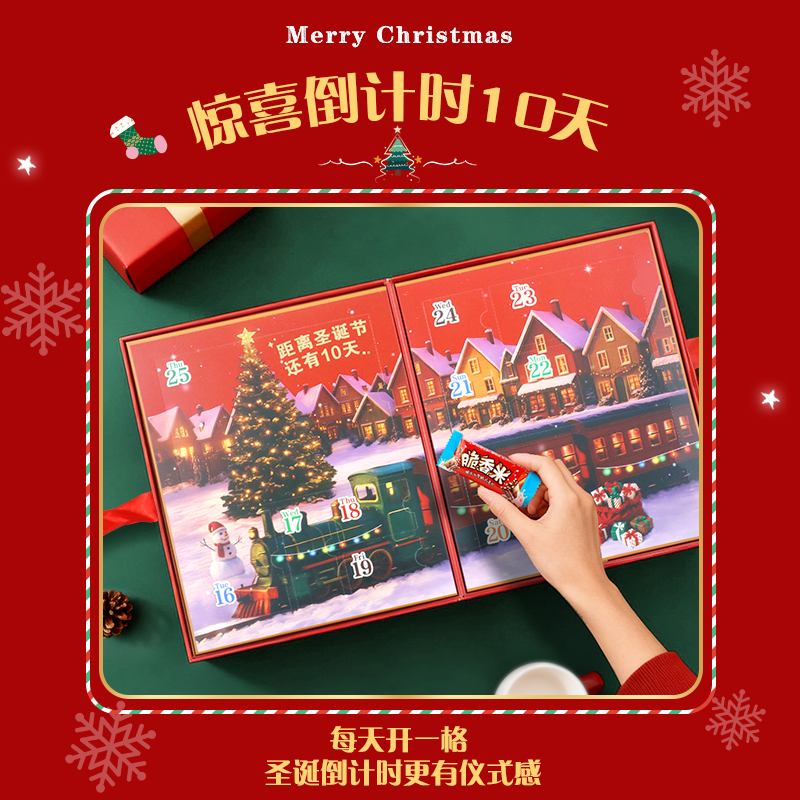德芙圣诞倒数日历巧克力礼盒牛奶mm豆脆香米巧克力糖果圣诞送礼