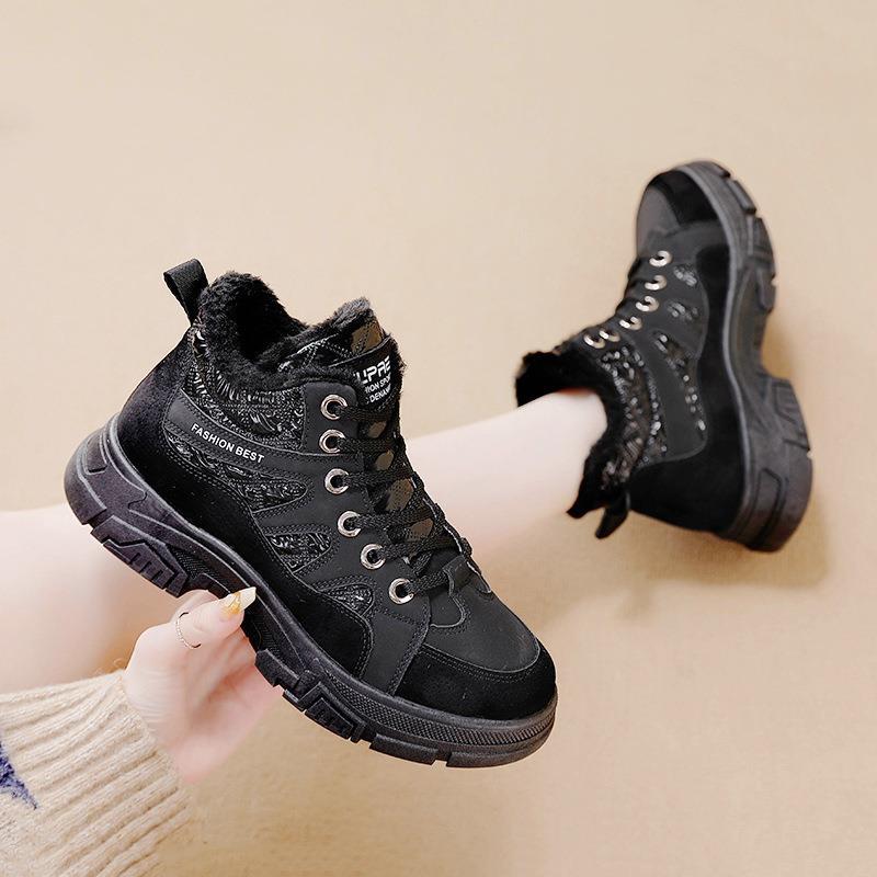 雪地靴女2024冬季新款加绒加厚高帮棉鞋女妈妈鞋子黑色保暖短靴子
